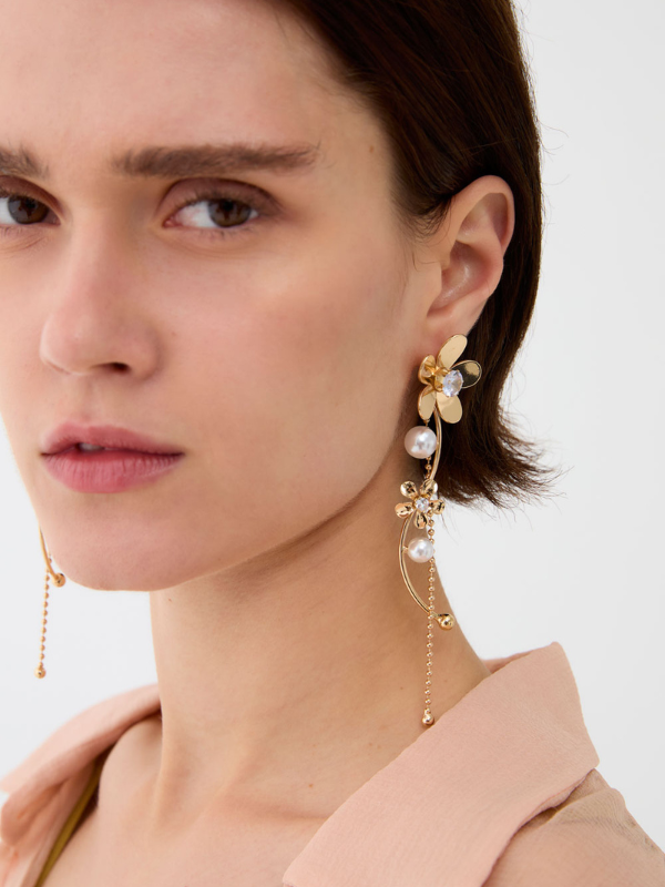 DAISY OVAL EARRINGS W/FLOWER ELEMENT GOLD