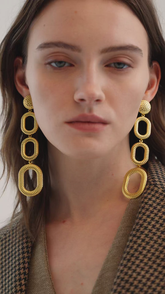 LONG OVAL EARRINGS STAINLESS STEEL GOLD