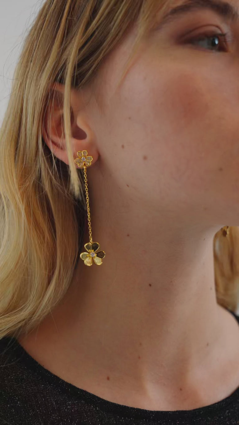 DROP EARRINGS WITH FLOWER/STONES GOLD