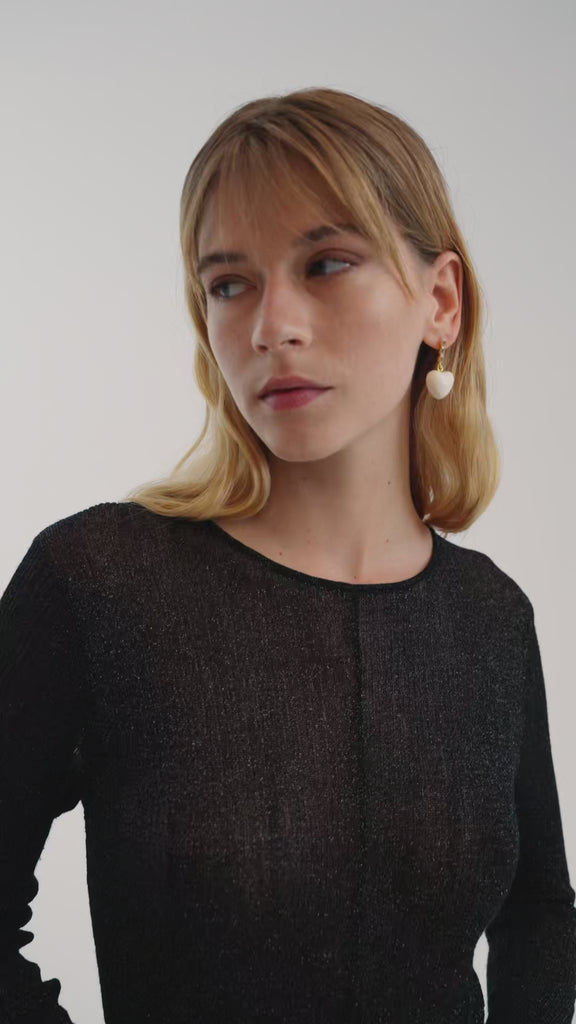 Drop earrings with a three-dimensional heart and a top enriched with luminous elements. Ideal for adding an elegant and refined detail to your look.
