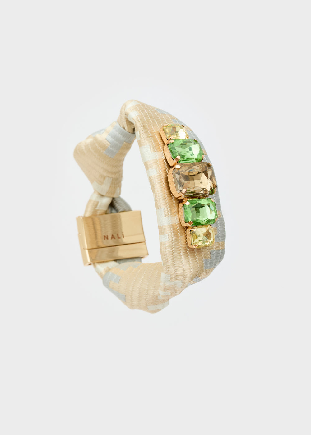 FABRIC BRACELET W/ GOLD + WHITE FLOWERS
