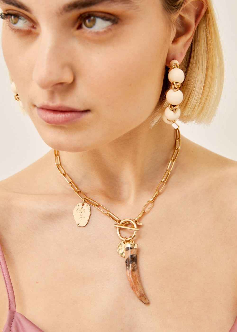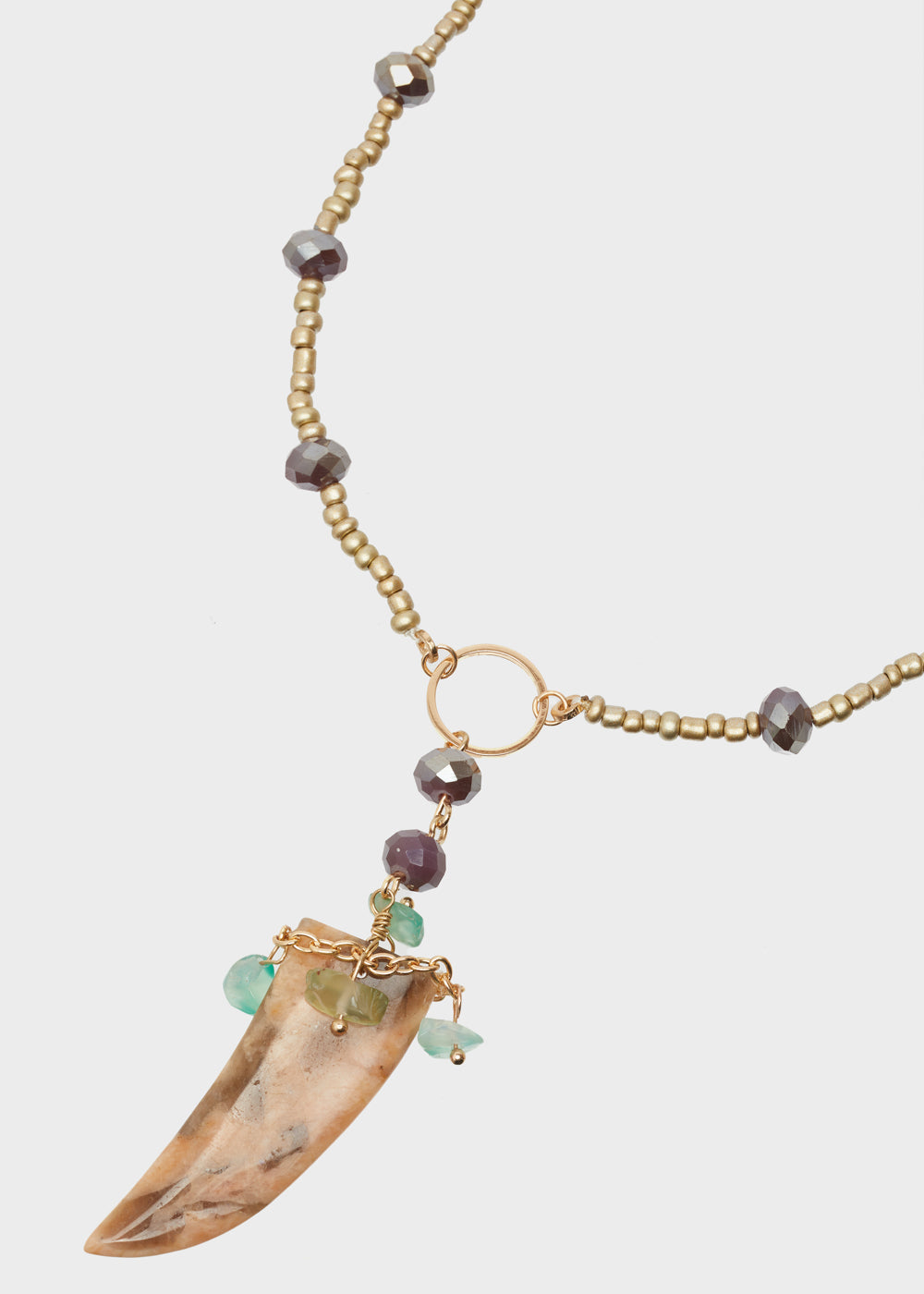 HORN NECKLACE W/ GOLD BEADS + COLORS