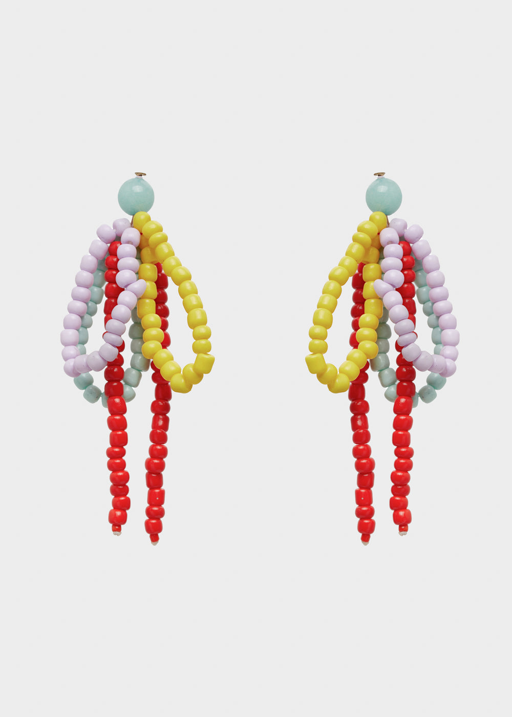 HOOP EARRINGS W/ MULTICOLOR BEADS