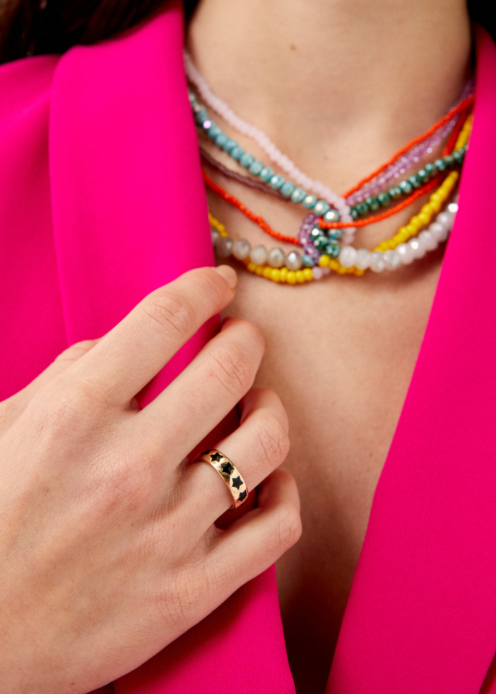 YELLOW OLGA CREW NECK NECKLACE WITH COLORED STONES
