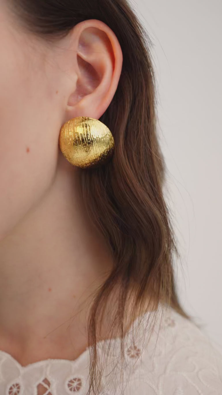 ROUND EARRINGS STRIPED DOMED STEEL. GOLD