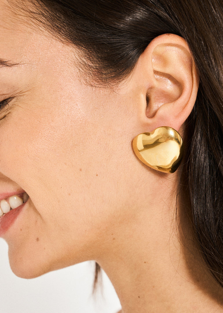 Heart-shaped earrings with a rounded design, perfect for adding a romantic and modern touch to your everyday outfit.