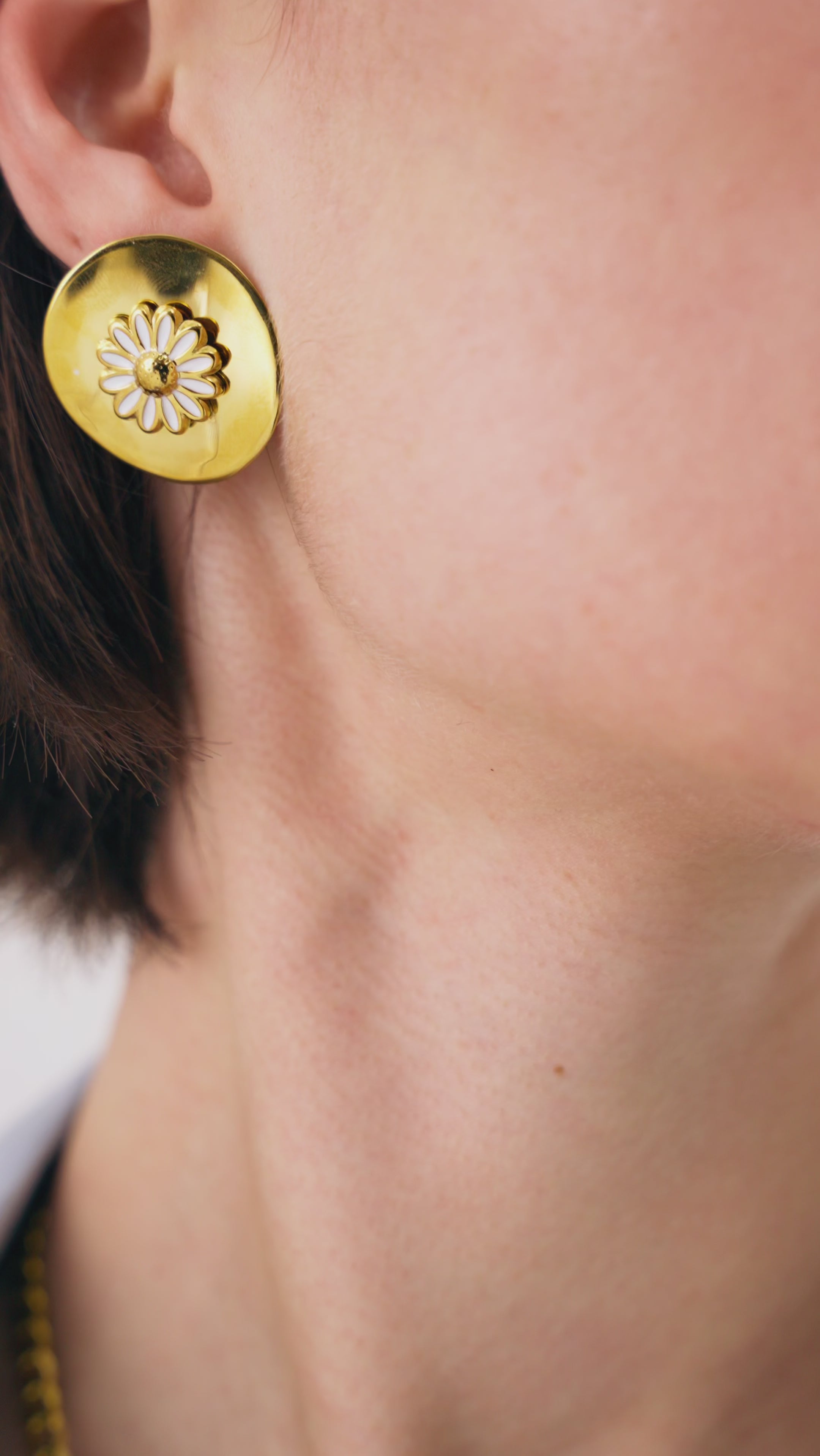 DAISY OVAL EARRINGS W/FLOWER ELEMENT GOLD