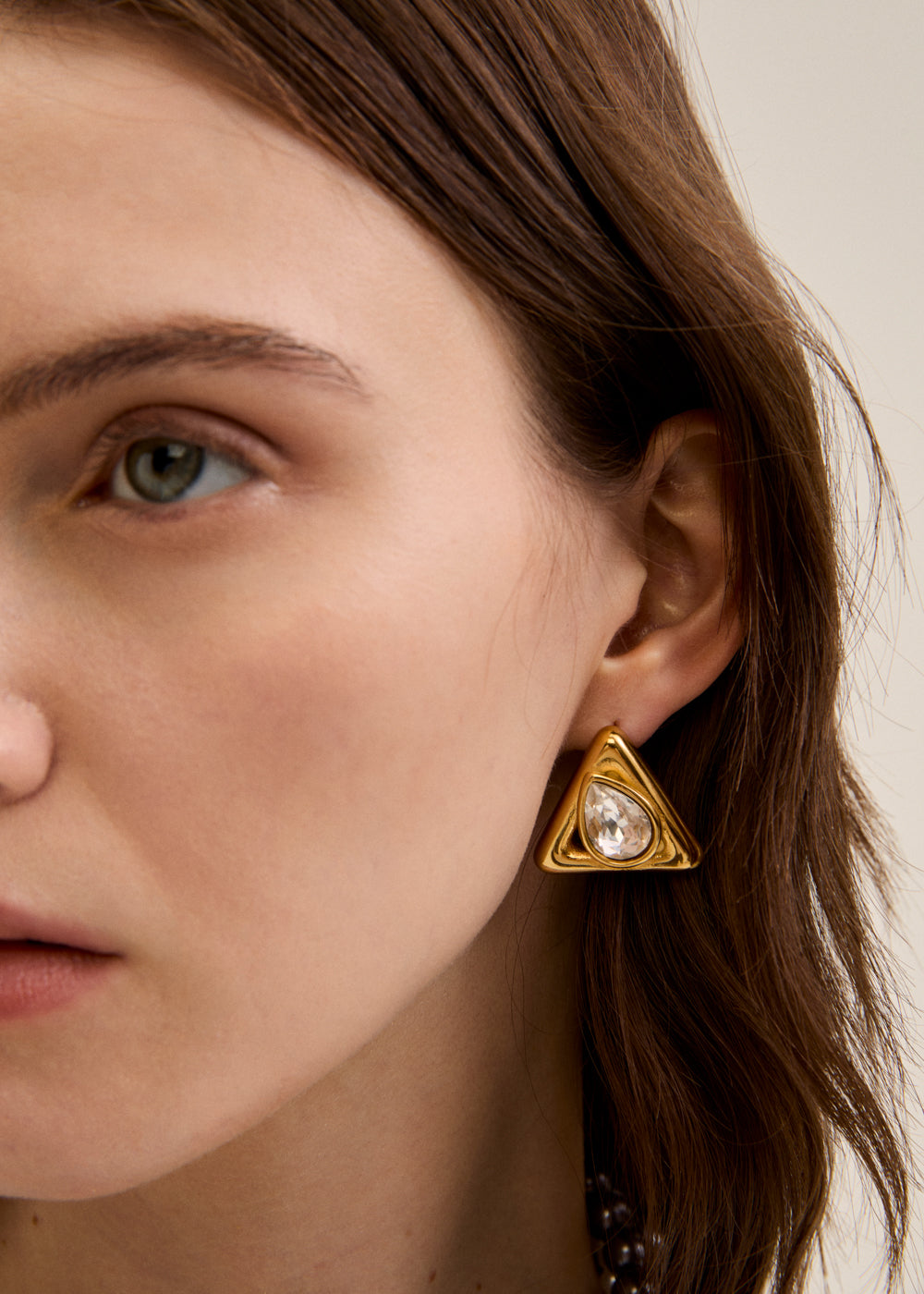 TRIANGLE EARRINGS WITH GOLD S. STEEL STONE