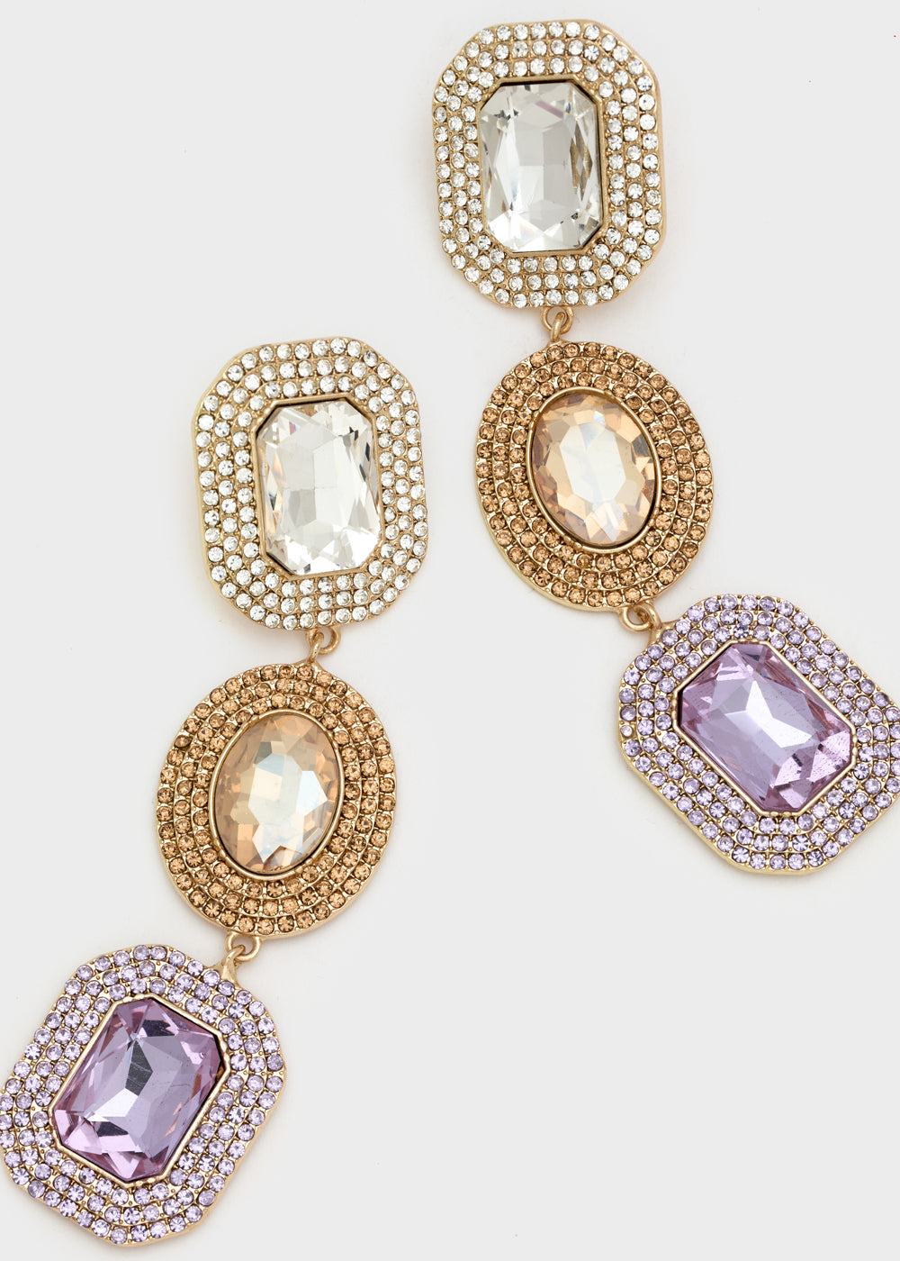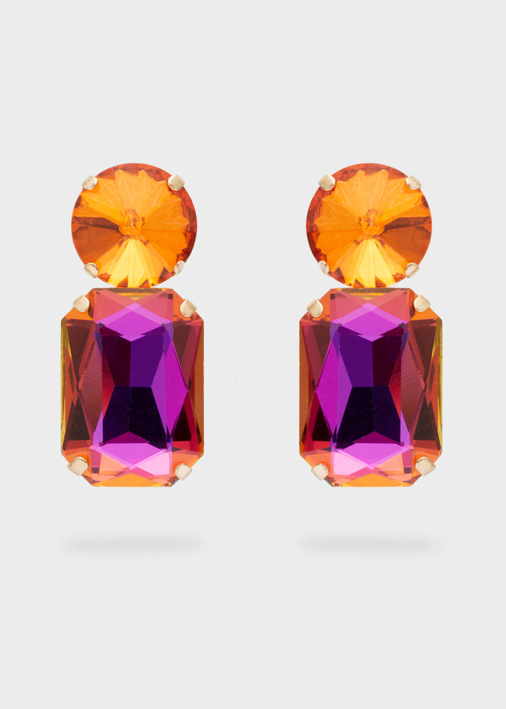 TRIS LOBE EARRINGS W/ PURPLE+FUCHSIA STONES