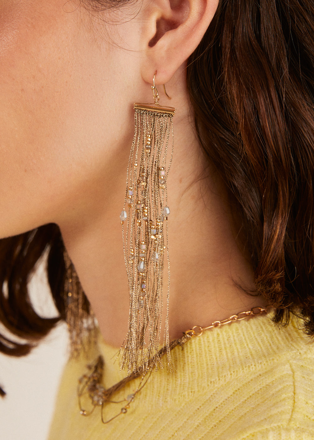 LONG MULTISTRAND EARRINGS GOLD+BEADS