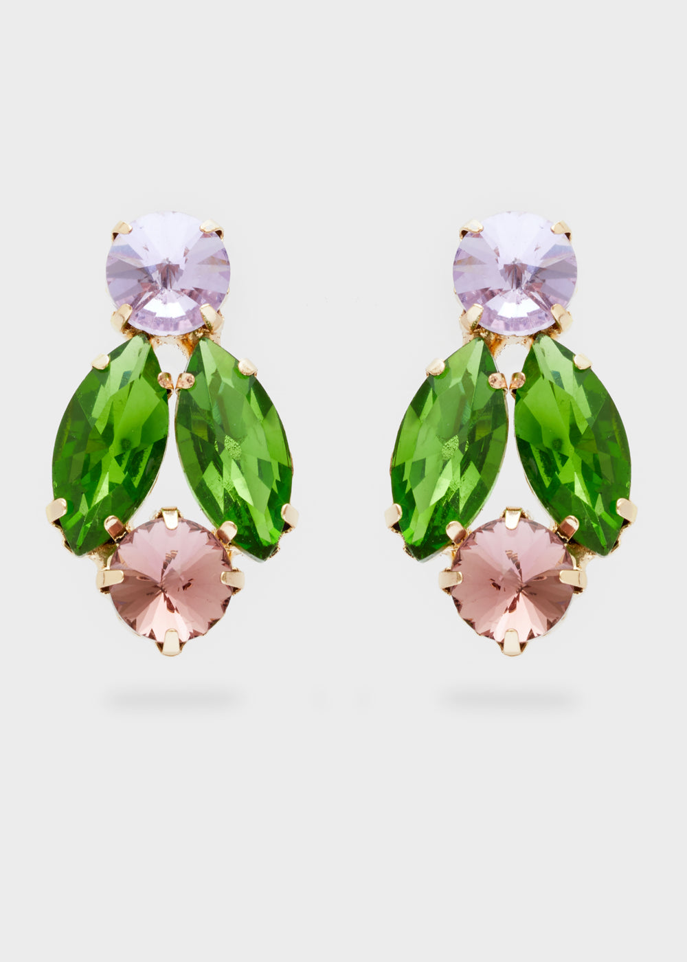 TRIS LOBE EARRINGS W/ GREEN+GREY STONES