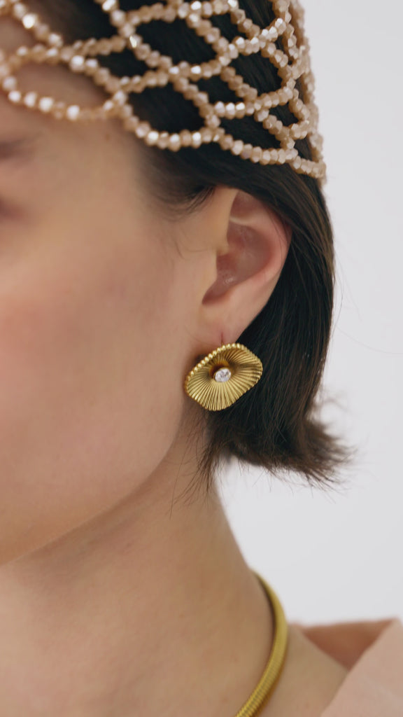 SQUARE LOBE EARRINGS WITH STONE GOLD