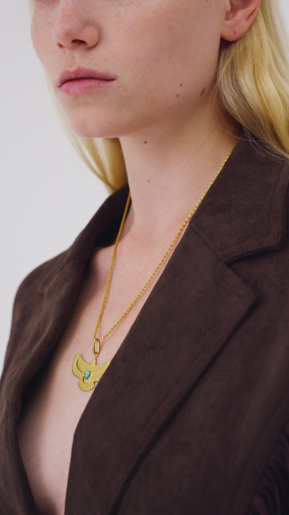 EAGLE STONE NECKLACE S.STEEL GOLD/L.BLUE