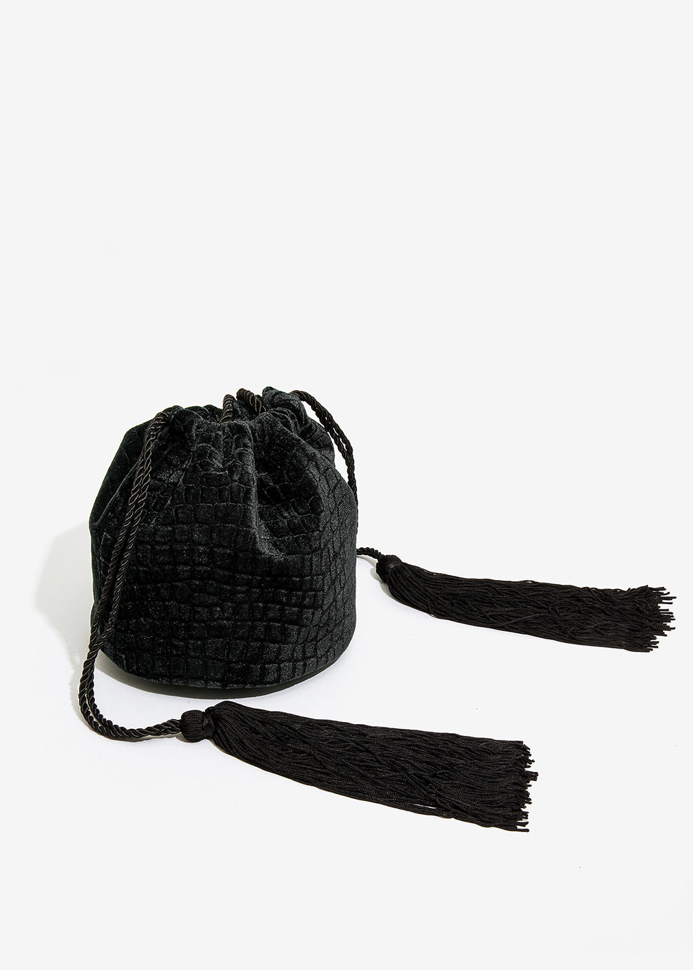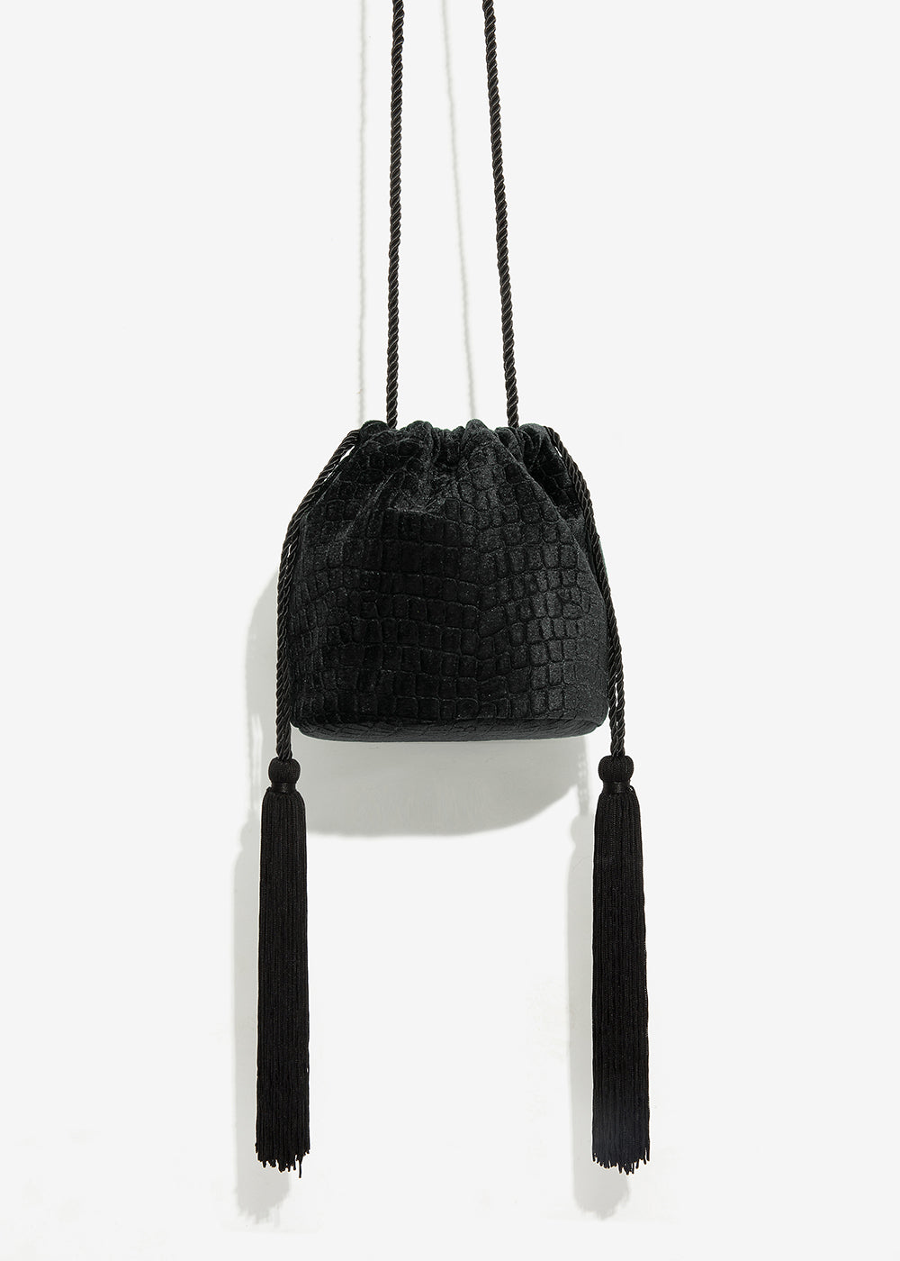 BORSINA NERO VELLUTO STAMPATO E TASSEL