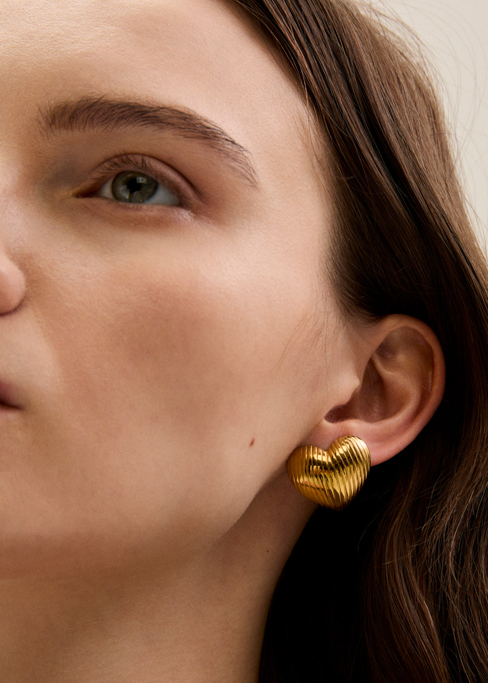 KNURLED HEART EARRINGS STAINLESS STEEL GOLD