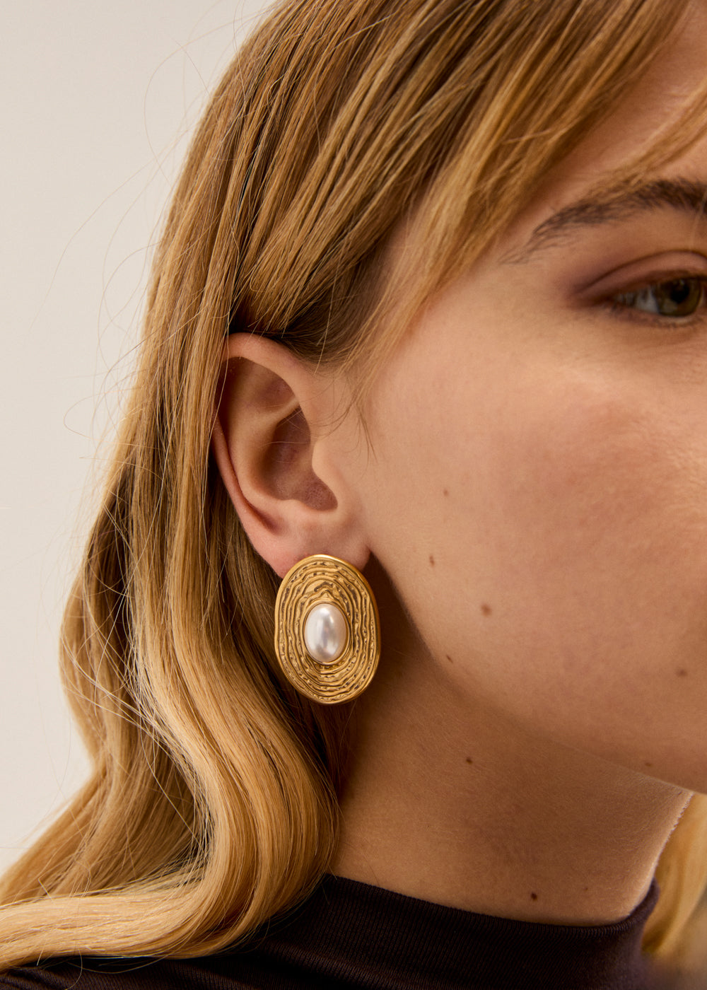 RETRO OVAL EARRINGS S. STEEL GOLD