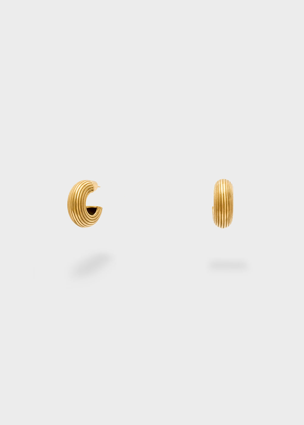 ROUND EARRINGS STRIPED DOMED STEEL. GOLD