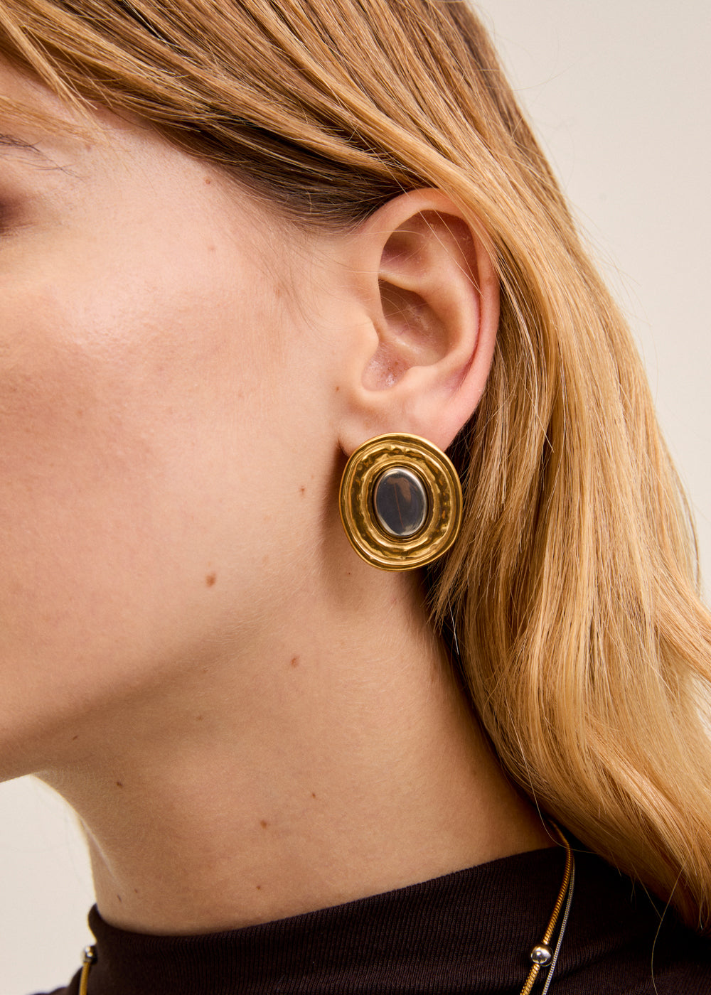 ROUND MOBED EARRINGS STAINLESS STEEL GOLD