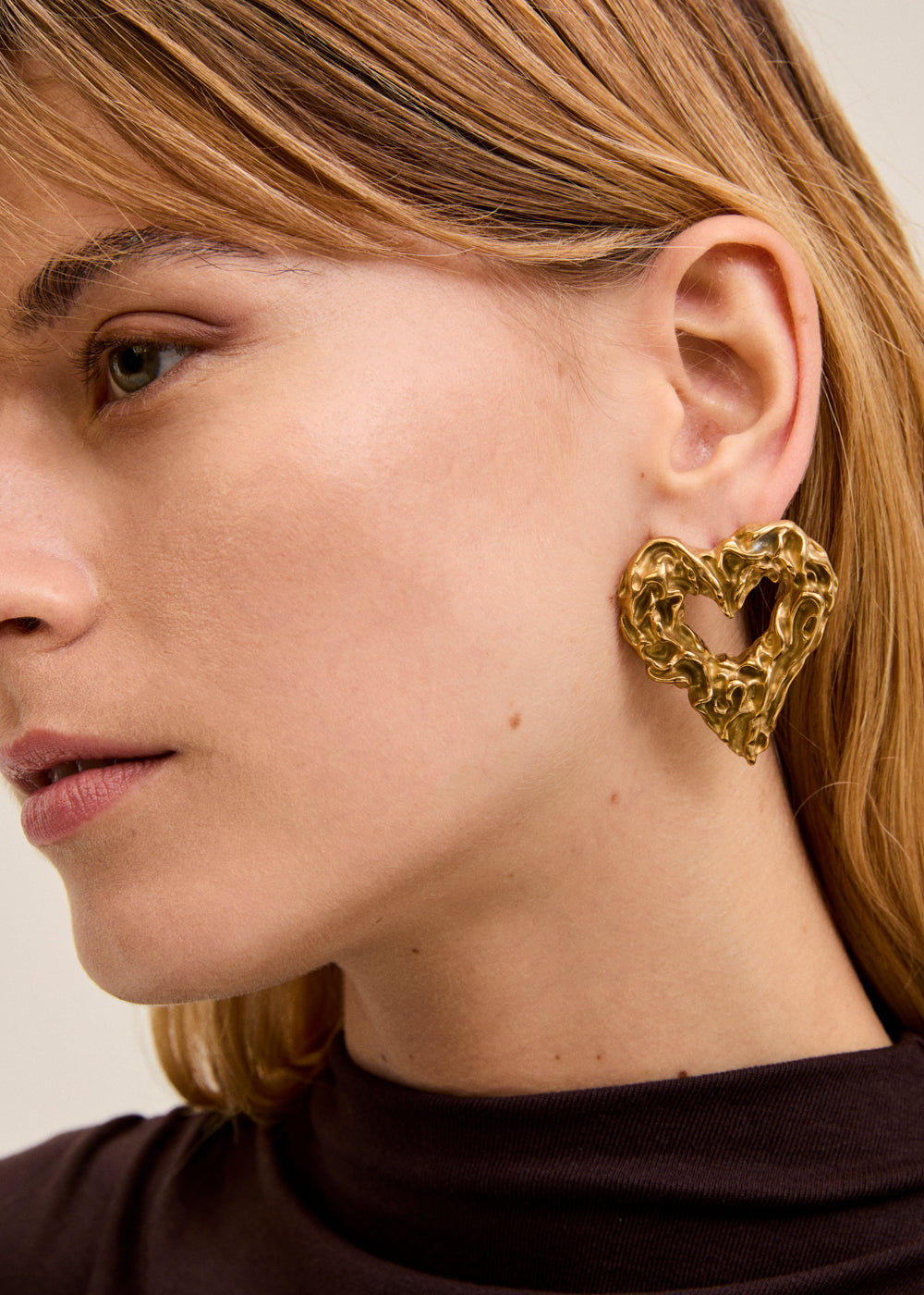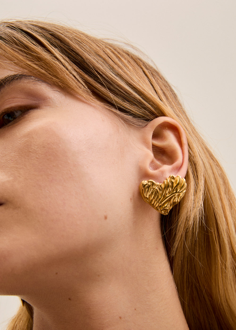 GOLD S. STEEL BIG HAMMERED HEART EARRINGS