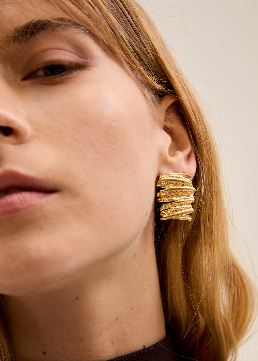 HAMMERED HOOP EARCUFFS S.STEEL GOLD