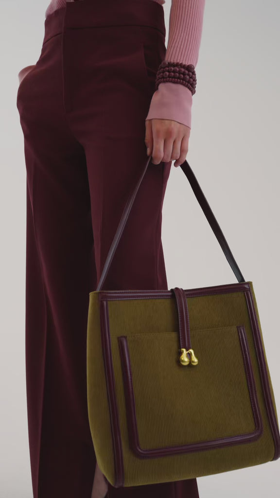 Structured ribbed-texture shoulder bag with spacious compartment and metal clasp, ideal for timeless everyday elegance.