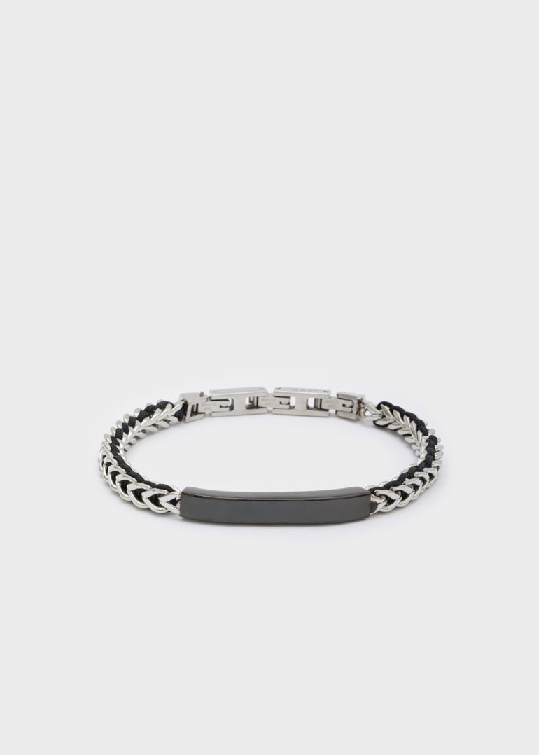 BRACELET ROPE+TUBE BLACK / S.STEEL
