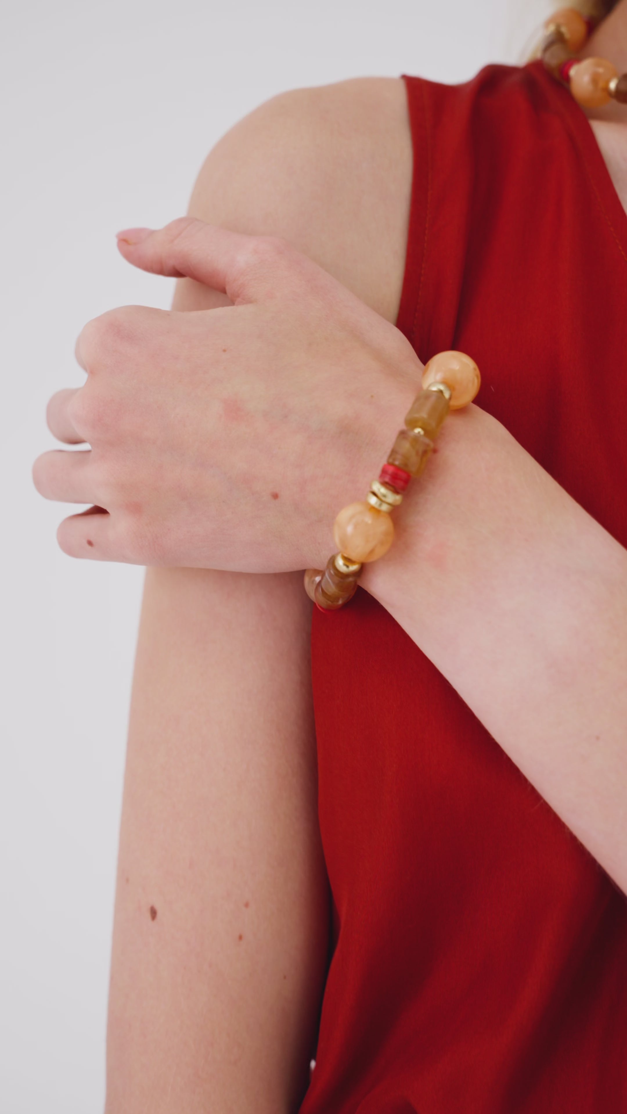 A women's bracelet with a bold personality, crafted with intricate components and metallic details that enhance its style. A perfect fashion accessory to complete contemporary outfits, designed for those seeking modern bracelets, handcrafted jewelry, and fashion accessories with a strong visual impact.