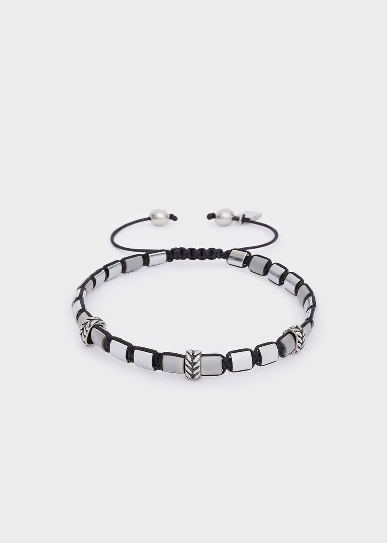 CUBE BRACELET S.STEEL + BLACK ROPE