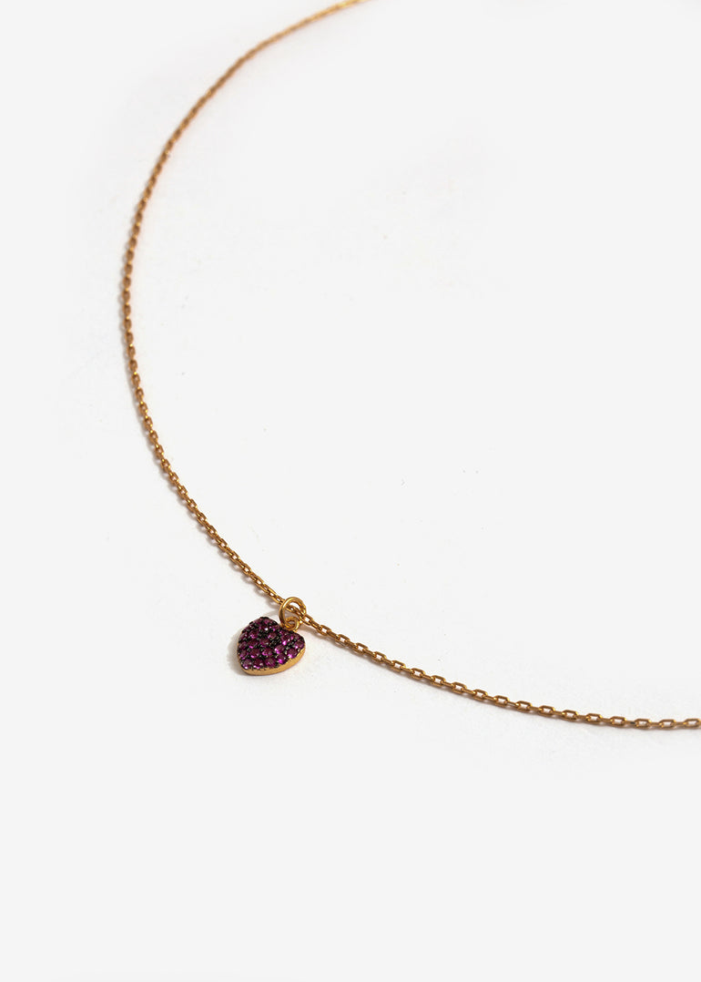 NECKLACE IN SILVER 925 GOLD HEART FUCHSIA CRYSTALS