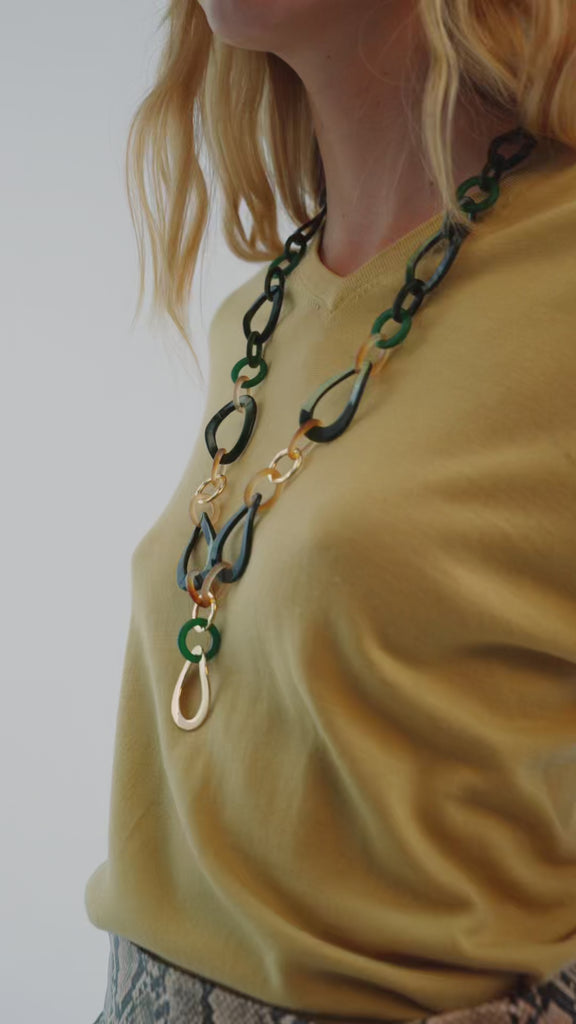 LONG CHAIN NECKLACE IN RESIN GREEN
