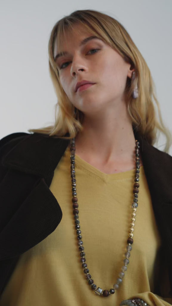LONG NECKLACE BEADS WOOD/GREY MIX