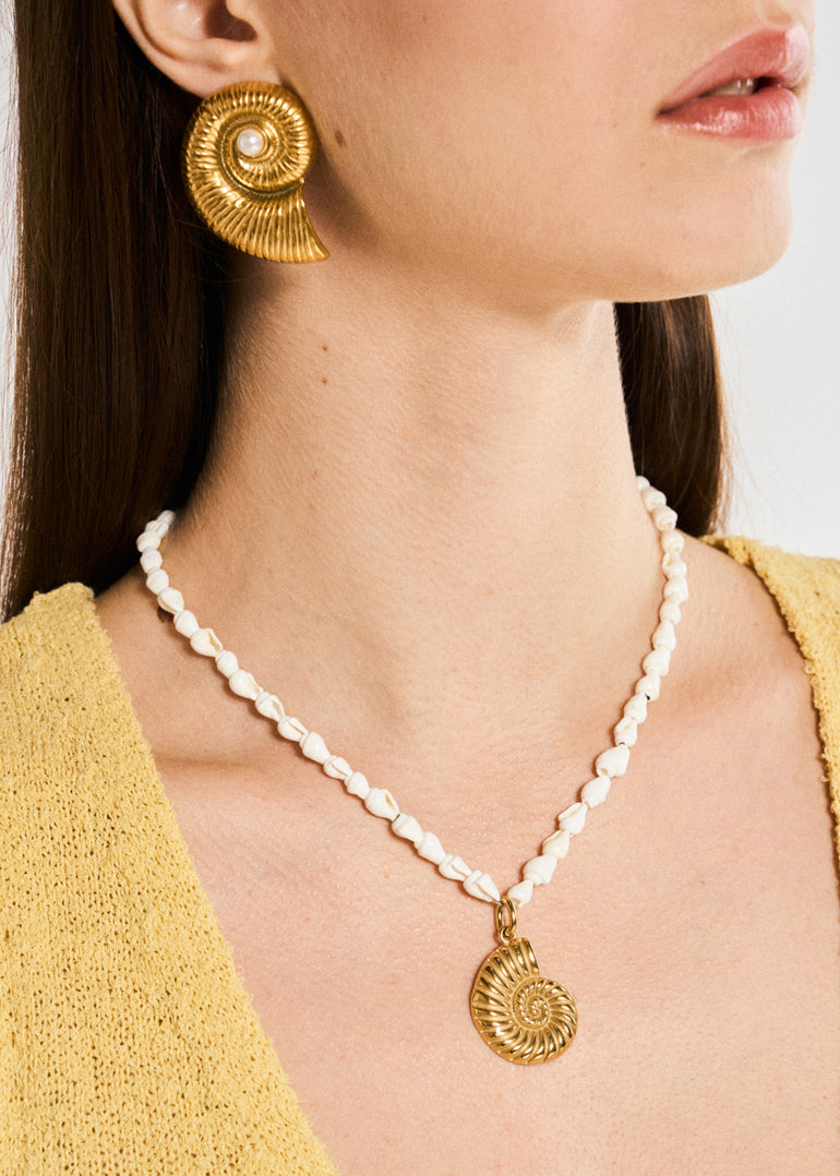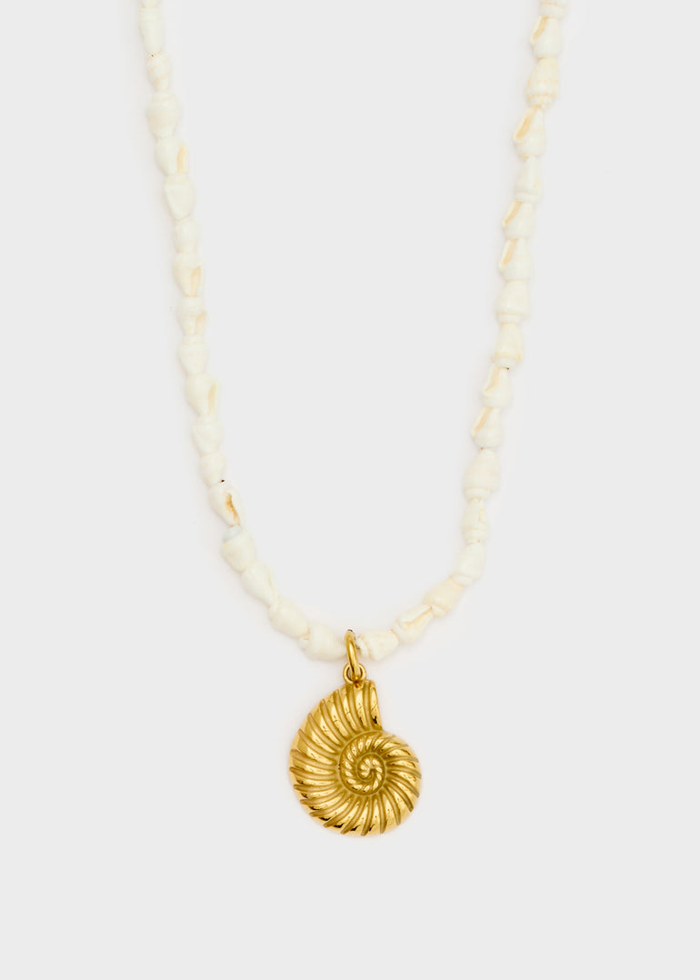 SHELL NECKLACE+CHARM FOSSIL 14K GOLD PLATED