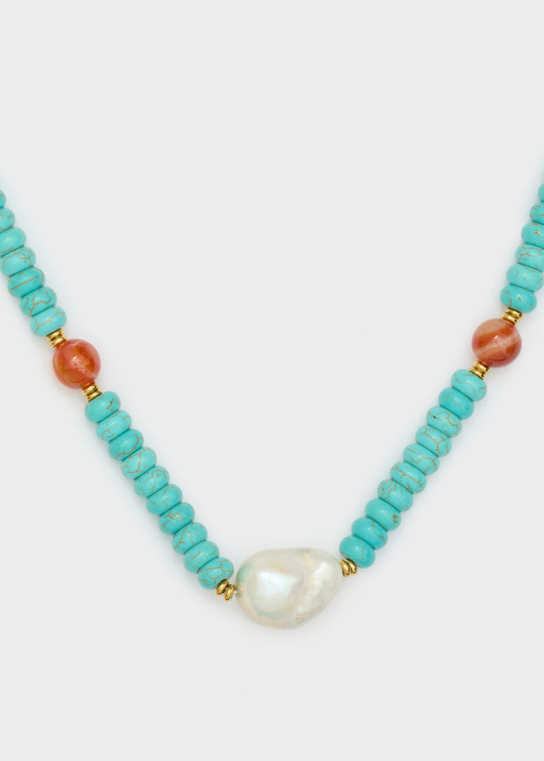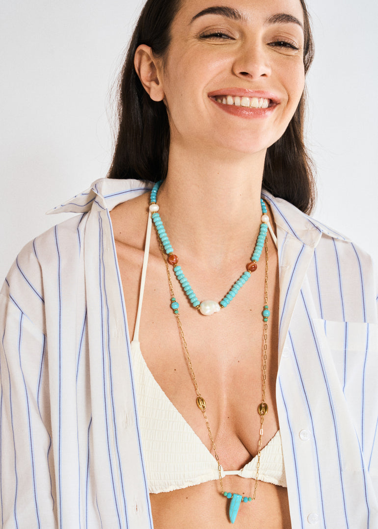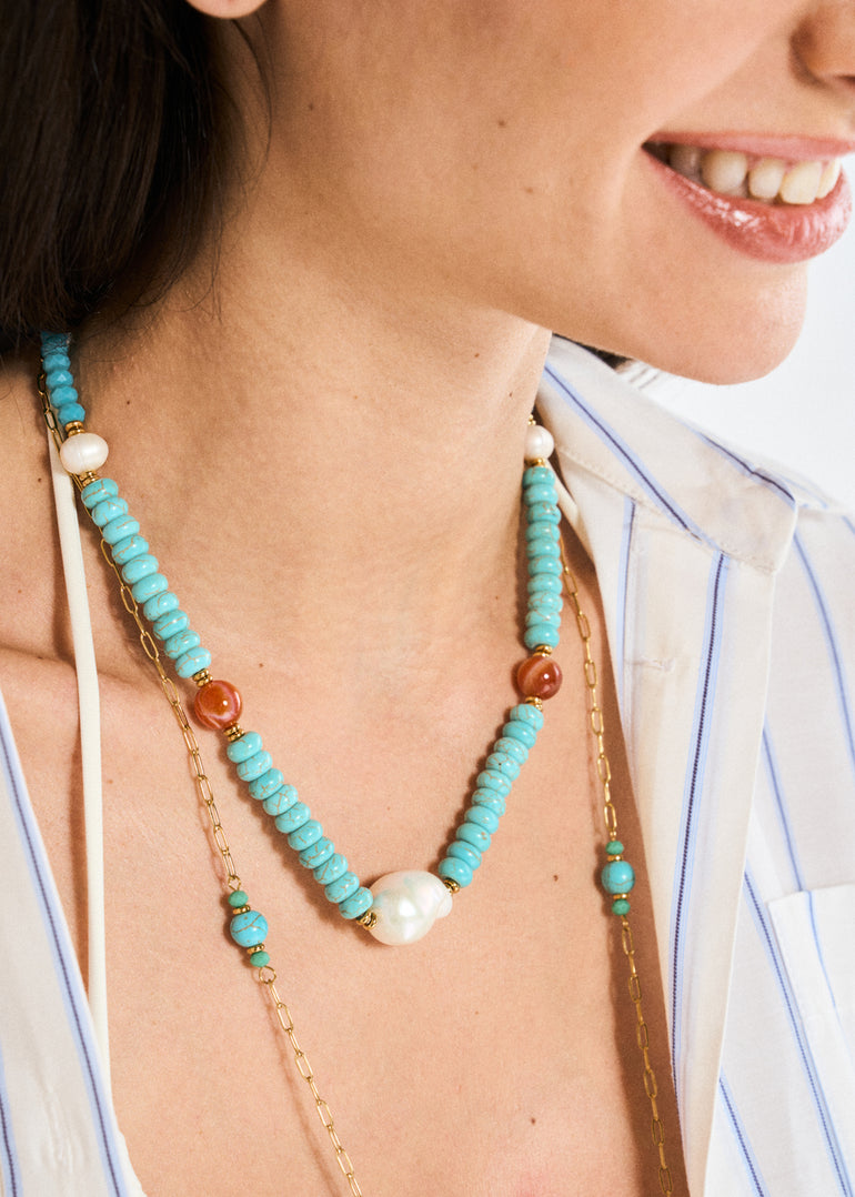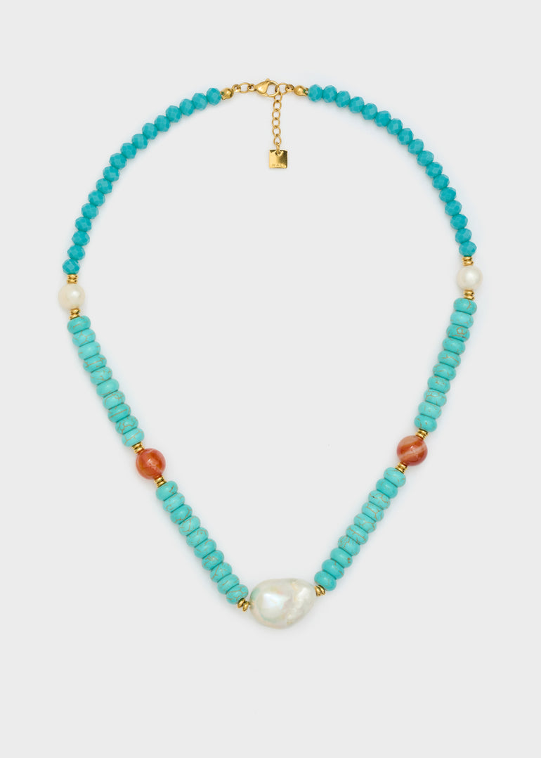 NECKLACE W/ LIGHT BLUE BEADS+ WHITE PEARLS