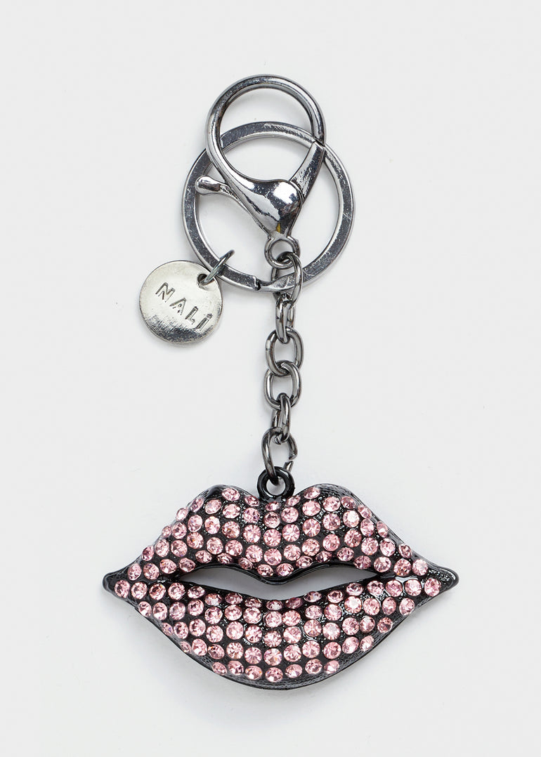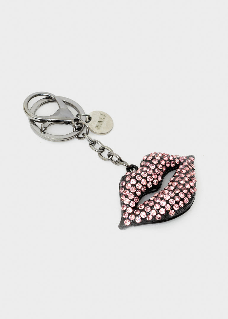 KISS KEYRING DARK GREY AND PINK CRYSTALS