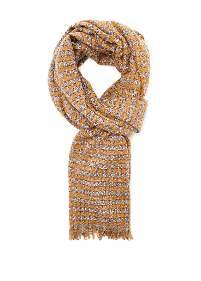 LOLLI BEIGE & MUSTARD PIED-DE-POULE SCARF